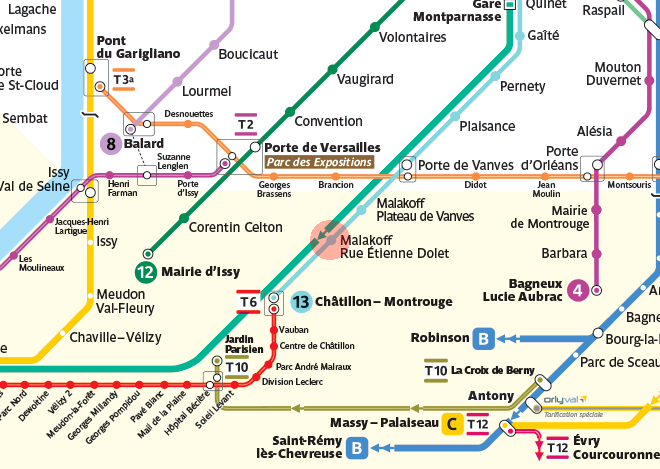 ^ Malakoff - Rue Etienne Dolet station on the Paris Metro map ^